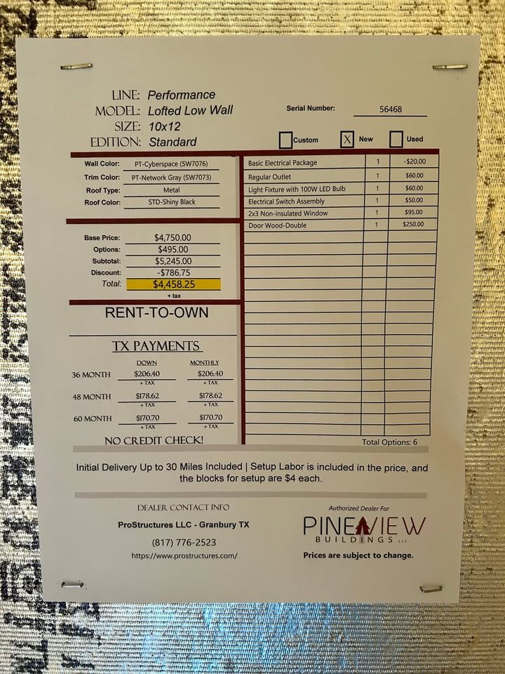 📍 Find it at: ProStructures of Granbury 3401 Glen Rose Hwy, Granbury, TX