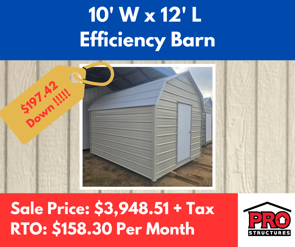 10×12 Efficiency Barn for Sale in Texas