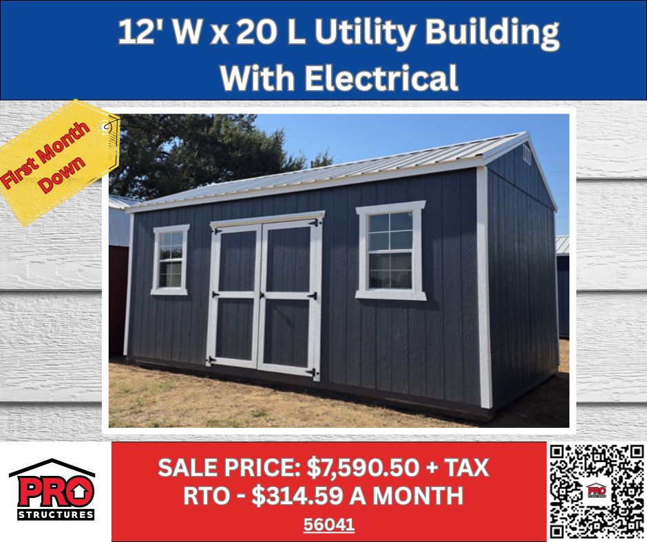 12×20 Utility Building with Electrical for Sale in Adkins & Floresville, TX