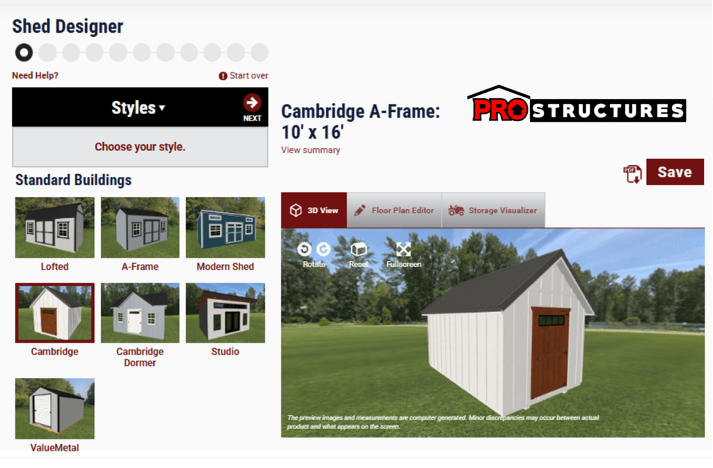 Use our 3D design tools to design the building of your dreams.